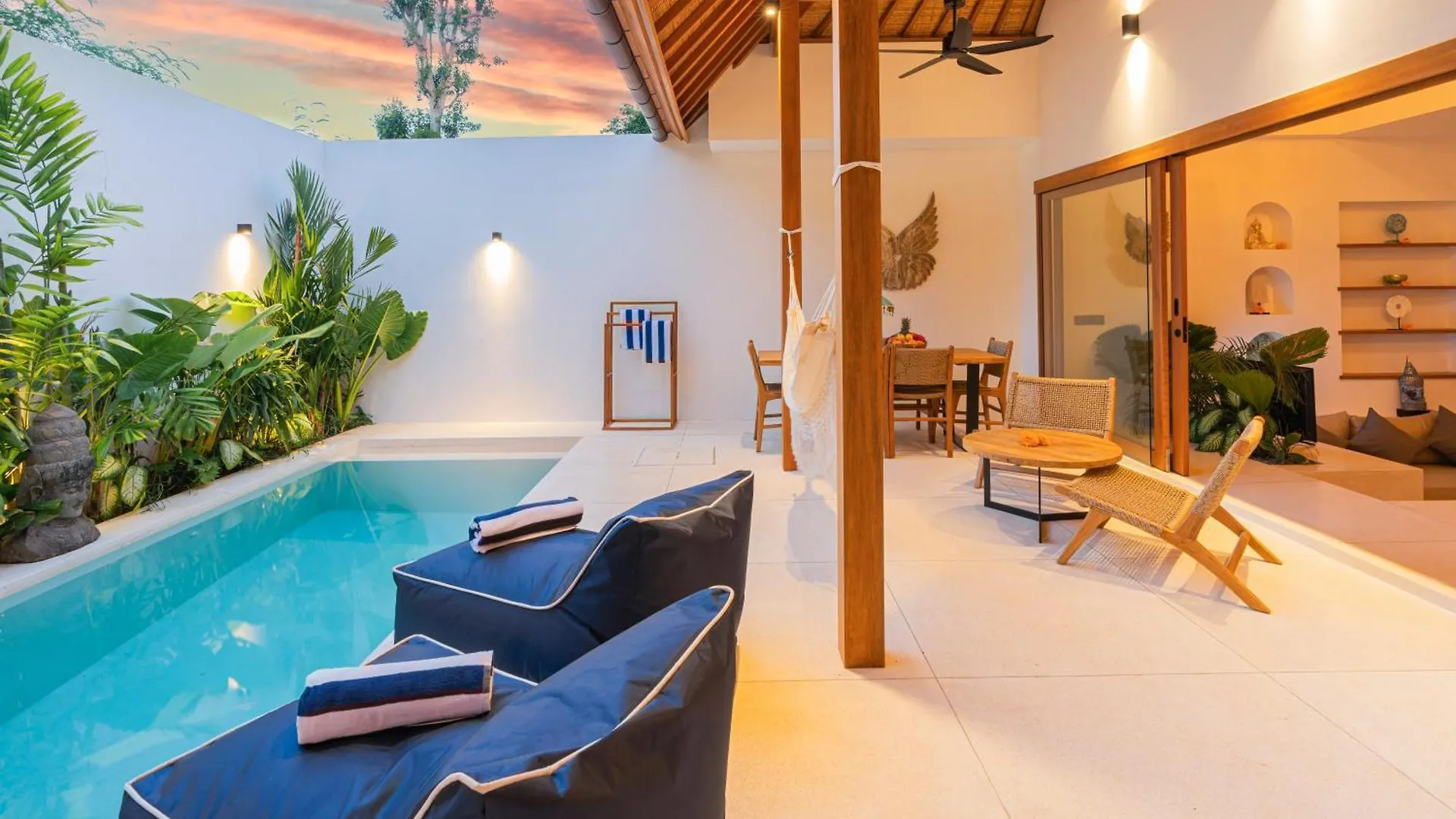 Os hóspedes podem preparar as suas próprias refeições numa cozinha equipada ou jantar em uma área de refeições ao ar livre e zona de refeições. Também há chaleira elétrica, máquina de café/chá e refrigerador disponíveis na cozinha. Oferecendo pratos da cozinha Indonesische, 3D Warung está situado a 5 minutos de distância a pé. O aeroporto Internacional de Bali está localizado a 5 km desta acomodação de Uluwatu. Encontrará piscina privada, bem como serviços de beleza, aulas de ioga e Spa no local. Os tratamentos de spa incluem serviços de beleza após um dia agitado.